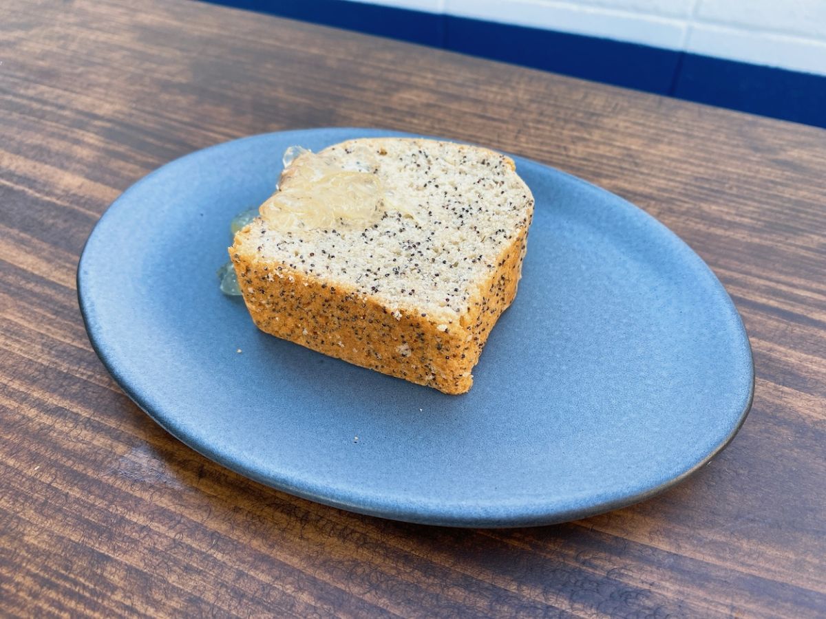 人気のメニューはほかにも!「レモンケーキ」はヴィーガンの方でも食べられるよう作られた動物性素材不使用のケーキ。生地にはポピーシードが含まれており、噛むたびにプチプチとした食感が楽しめます。スプレッドのマーマレードと合わせてぜひ。