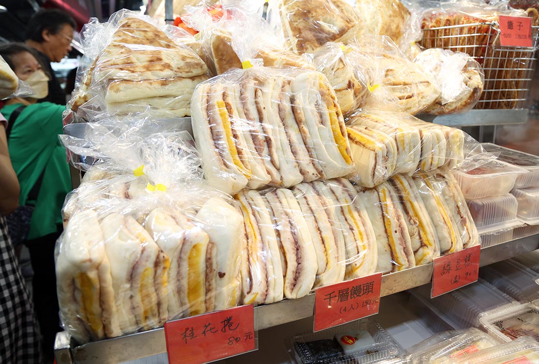 もうひとつの人気商品が「千層饅頭(チェンツァンマントウ)」4個入りNT$150です。マントウのミルフィーユ!?なこの商品、生地には小豆、チーズ、カスタード、タロ芋ペーストの4層が挟まっています。すごく甘いのかと思えば実際はちょうどいい甘さ!お店のマントウは常温保存では1日、冷蔵は3日、冷凍だと1か月もつそう。直前に買って持ち帰り冷凍すれば、日本にいながら台湾風朝ご飯を楽しめちゃいます!