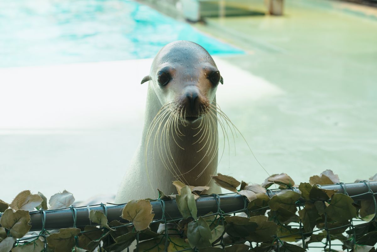 あわしまマリンパークのショーの魅力は、とにかく海獣たちとの距離が近いこと!アシカの毛艶や表情までも、しっかりと目視できる近さで見ることができます。
