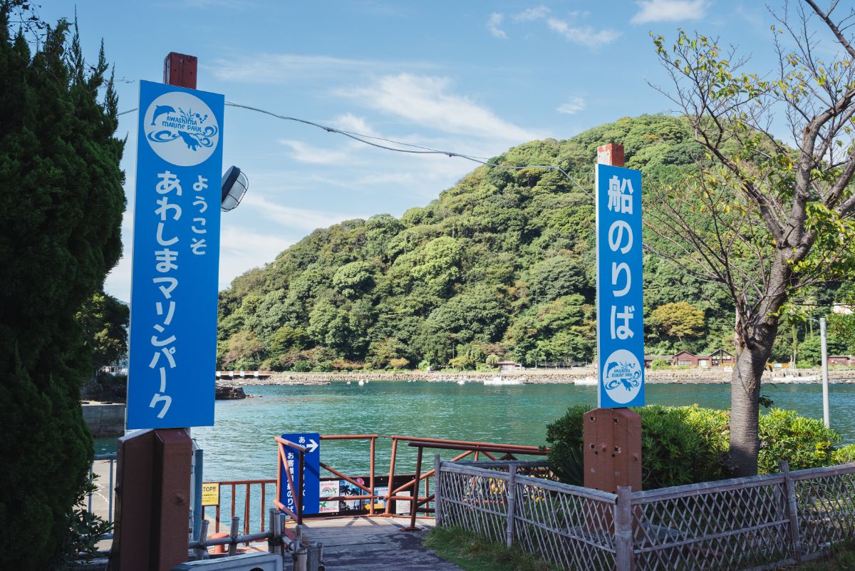 乗船から2分、無人島にある水族館・あわしまマリンパークに到着です。