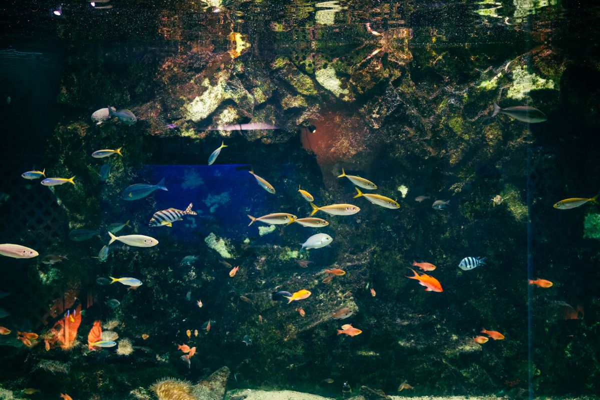 奥に進んでいくと現れる大水槽では、淡島周辺の海の一部をそのまま再現しています。自然の砂や石、海底にたゆたうロープなど、実際に海の中を覗いているかのような気持ちに。水槽の前にあるベンチでのんびりと、魚たちを眺める時間に癒やされます。