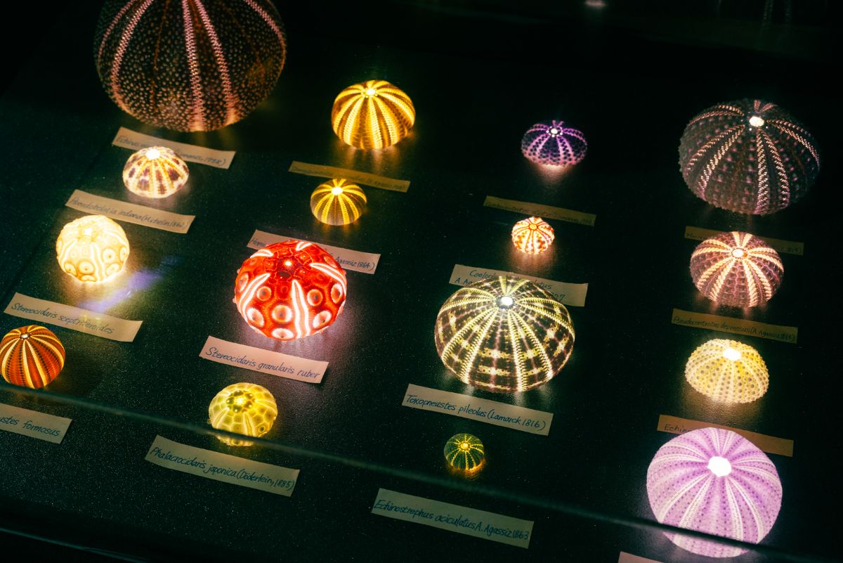 ウニへの愛があふれ出している展示コーナーを過ぎると、誰もが気づけばウニ通(ツウ)に。食べておいしいだけじゃない、ウニの魅力を垣間見ることができます。