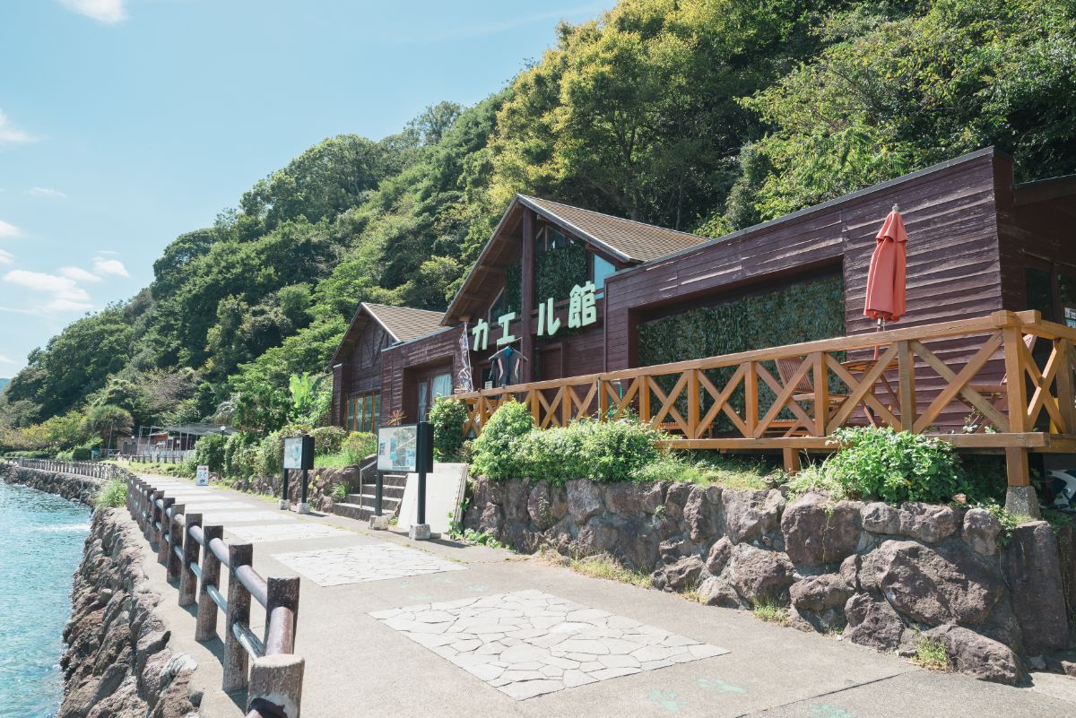 無人島内には、カメやアザラシなど海のいきものたちを近くで見ることができるプールや、カエル館、水族館などの展示があります。淡島周辺の海に生息するいきものが展示される大水槽では、すぐそばに広がる海に飛び込んだかのような気持ちに。