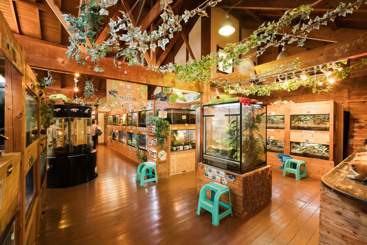 国内最大級の展示数を誇るカエル館は必見。国内外から集められた常時50種類以上のカエルが展示されています。