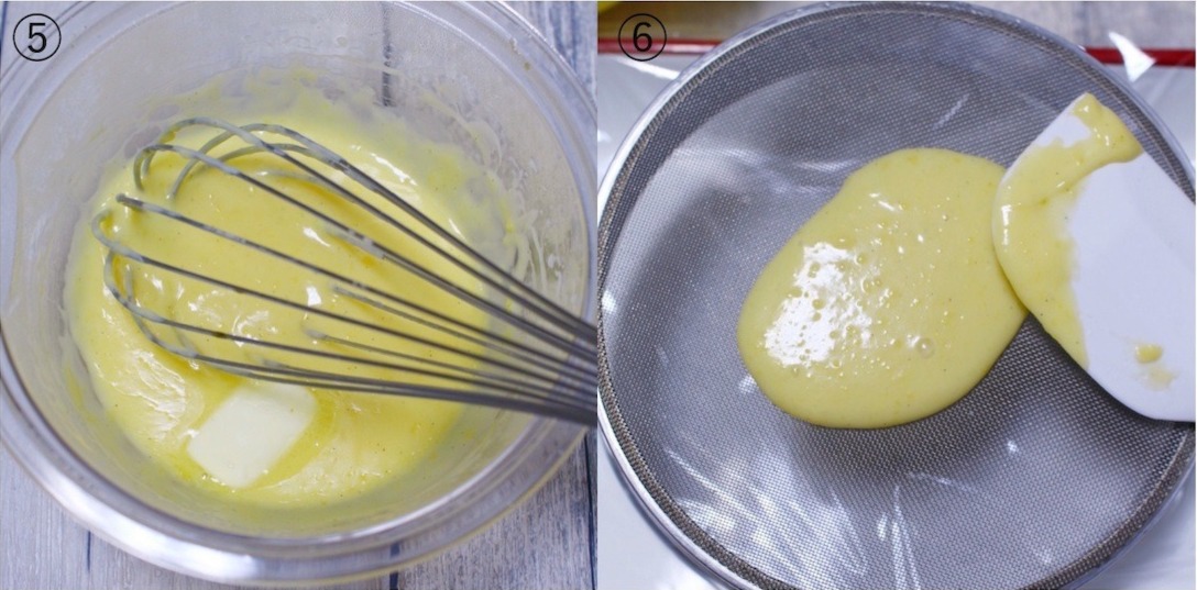 ⑤十分にとろみがついたら、有塩バターを加え、泡だて器で混ぜます。