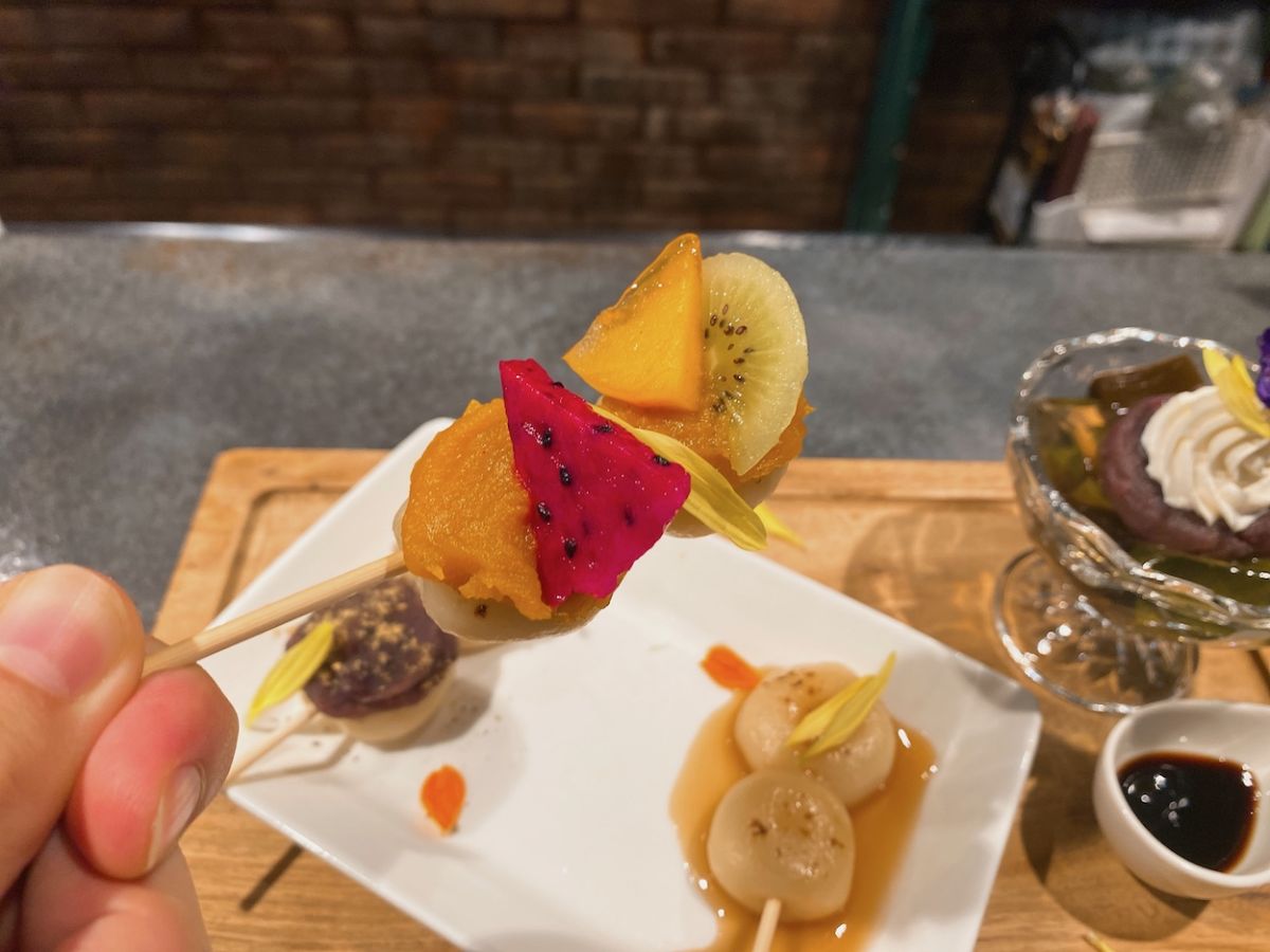 絶妙食感!季節のフルーツがのったかわいいお団子