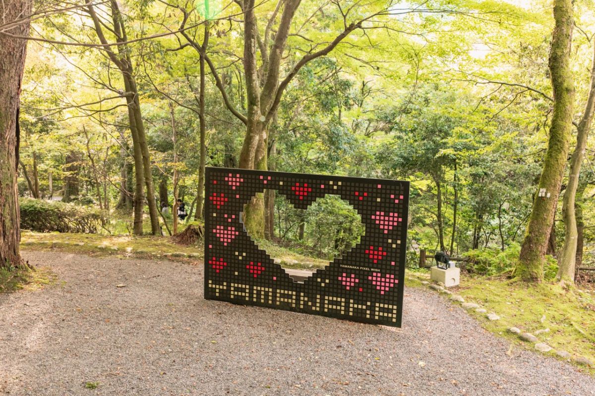 あやとりはしを渡りきると、YAMANAKAと書かれた写真パネルも!ハートの中に緑が見えるのがいいですね。