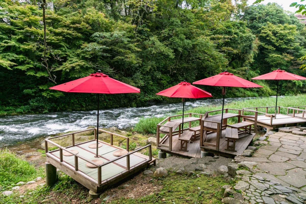 そんな加賀温泉郷エリアにある山中温泉に、「鶴仙渓」という景勝地として知られる場所があります。その鶴仙渓では、毎年4月から11月の期間限定で川床が登場。絶品スイーツも食べられるとのことで、早速行ってきました♪