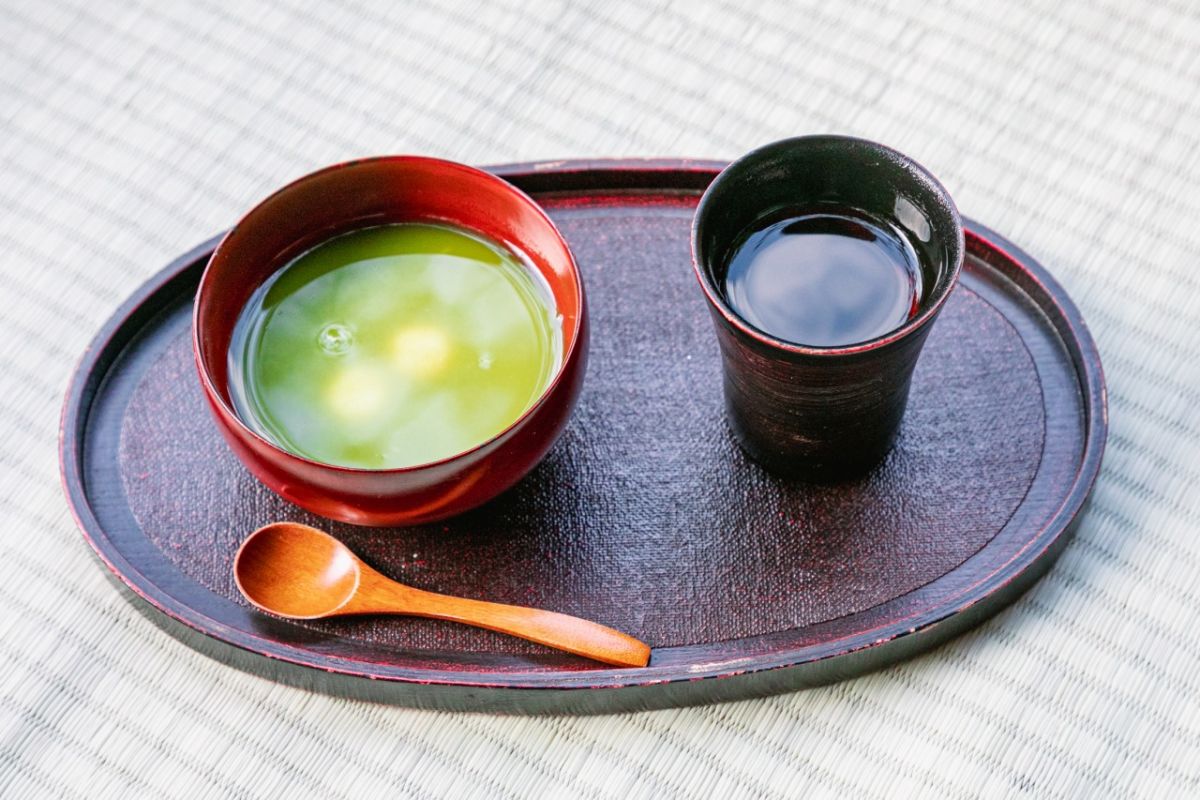 基本川床セットは冷製抹茶しるこか川床ロールの一人1セットですが、今回はどちらも実食させて頂きました。そのお味は…?