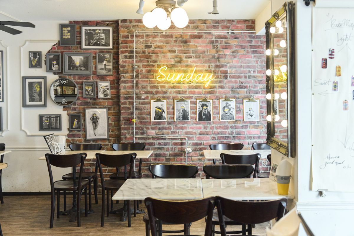 イメージはオーナーの憧れの地・ニューヨーク。オーナーはもともとイベントの企画やデザインを行っていたため、店舗デザインも自ら行い、壁や天井などのほか、一部のテーブルも手掛けたといいます。