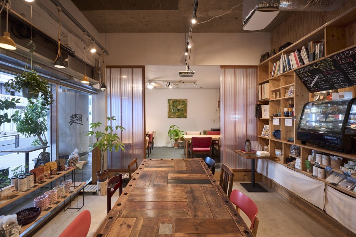 本郷三丁目駅から徒歩約5分。大通りから少し入った路地にたたずむ「発酵するカフェ 麹中(はっこうするかふぇ こうじちゅう)」は、日本の食文化に欠かせない塩麹や醤油麹など、発酵食品を使った料理を提供するカフェです。