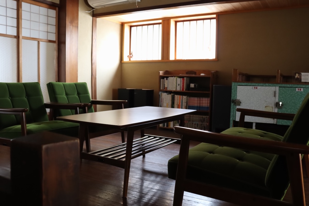 こちらはOMOYAの2階。階段を上がったリビングスペースです。この部屋を挟んで両サイドにツインのベッドルームがあり、最大4名まで宿泊できます。
