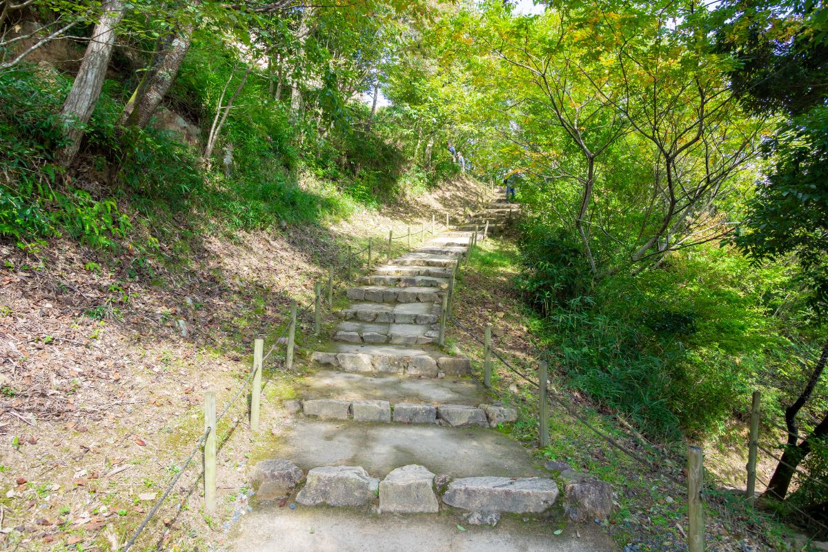 JR竹田駅から歩いて向かう場合、竹田城跡へは「駅裏登山道」「南登山道」「表米神社登山道」「西登山道」など、いくつかの登山ルートがあります。距離や階段数、斜面の傾度なども異なるため、体力に自信がある人はぜひ挑戦してみましょう。