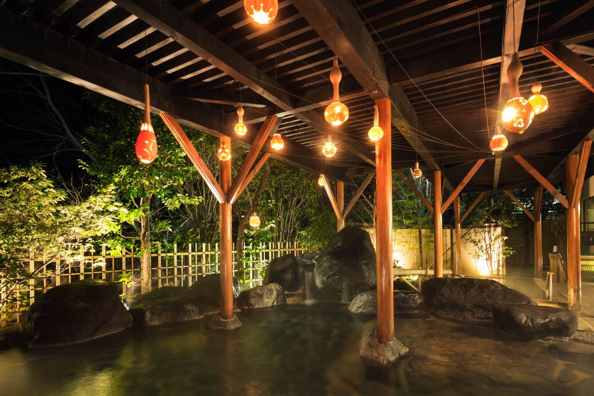 豊富な湯量と泉質を誇る伊東温泉に位置し、源泉かけ流しの湯殿や源泉プール、足湯などで存分に温泉を楽しめる宿。金目鯛に伊勢エビ、アワビなど伊豆の豊かな海の幸を用いた料理や、伊豆で古くから親しまれている、椿油作り体験が楽しめます。客室はすべて伊豆の四季の草花をテーマに、伝統工芸や文化を取り入れたご当地部屋「伊豆花暦の間」。河津桜など伊豆の植物で染めた糸を1本1本丁寧に機織り機で織り上げた「花暦スクリーン」や、季節の草花がかたどられた「木漏れ日行灯」などが設えられています。