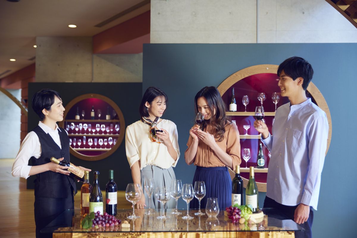ワインリゾートを提唱する「星野リゾート リゾナーレ八ヶ岳」では、季節ごとのイベントのほか、宿泊プランやアクティビティなどでワインの魅力に触れることができます。客室はボルドーカラーを基調にした落ち着きある空間が特徴。ソムリエがセレクトしたワインと客室限定のワインを収めたワインセラーがある「ワインスイートメゾネット」(写真)など特別な客室も魅力です。併設のワインショップではテイスティングして購入も可能。山梨県、長野県の厳選ワインをおみやげにできますよ。