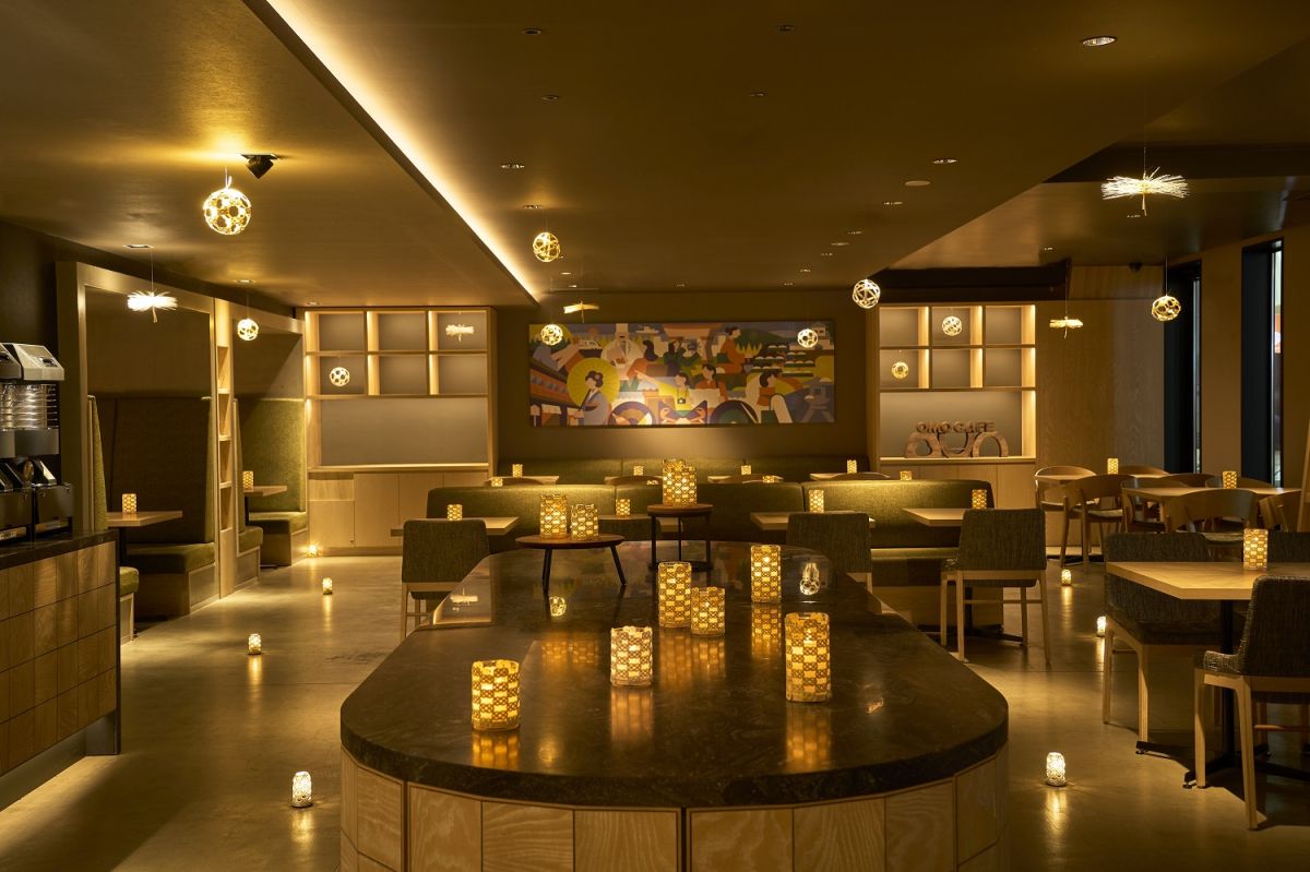 北陸随一のグルメタウン金沢市片町に立つ「OMO5金沢片町(おも)by 星野リゾート」のコンセプトは「あっぱれ!味のかたまち」。生らくがん作り体験をはじめ、“おいしい”のはもちろんのこと、食にまつわる歴史や文化など、知的好奇心をくすぐる体験が多数用意されています。併設のカフェでは棒茶や加賀野菜を使ったスイーツが味わえ、夜になると伝統工芸・加賀水引をテーマにした幻想的な「水引夜灯り(よあかり)カフェ」に変身。金沢の伝統や文化を思う存分体感できます。