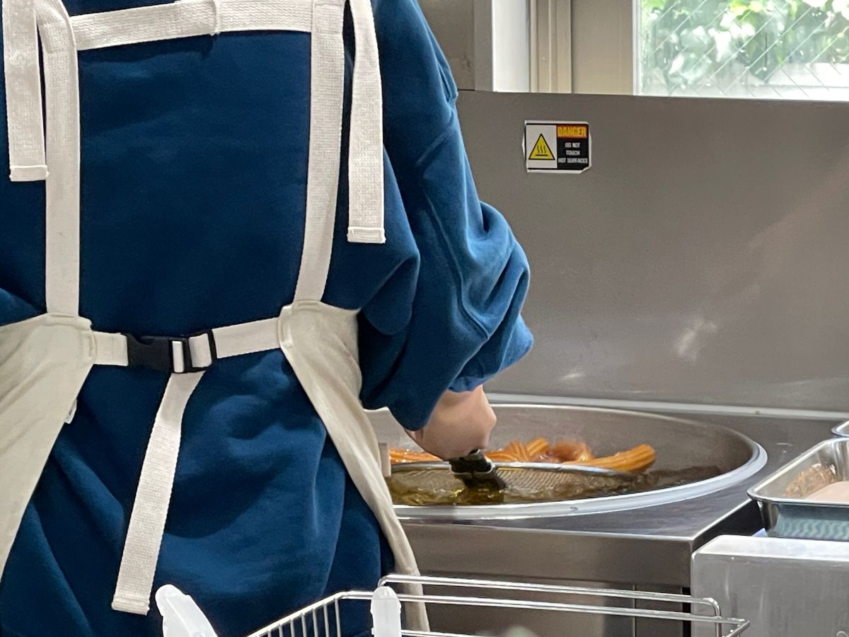 シナモンシュガーがたっぷりまぶされた揚げたてのチュロスは、外はカリッ、中はモチッの幸せな食感。熱々でしっかりと甘く、罪なおいしさです。