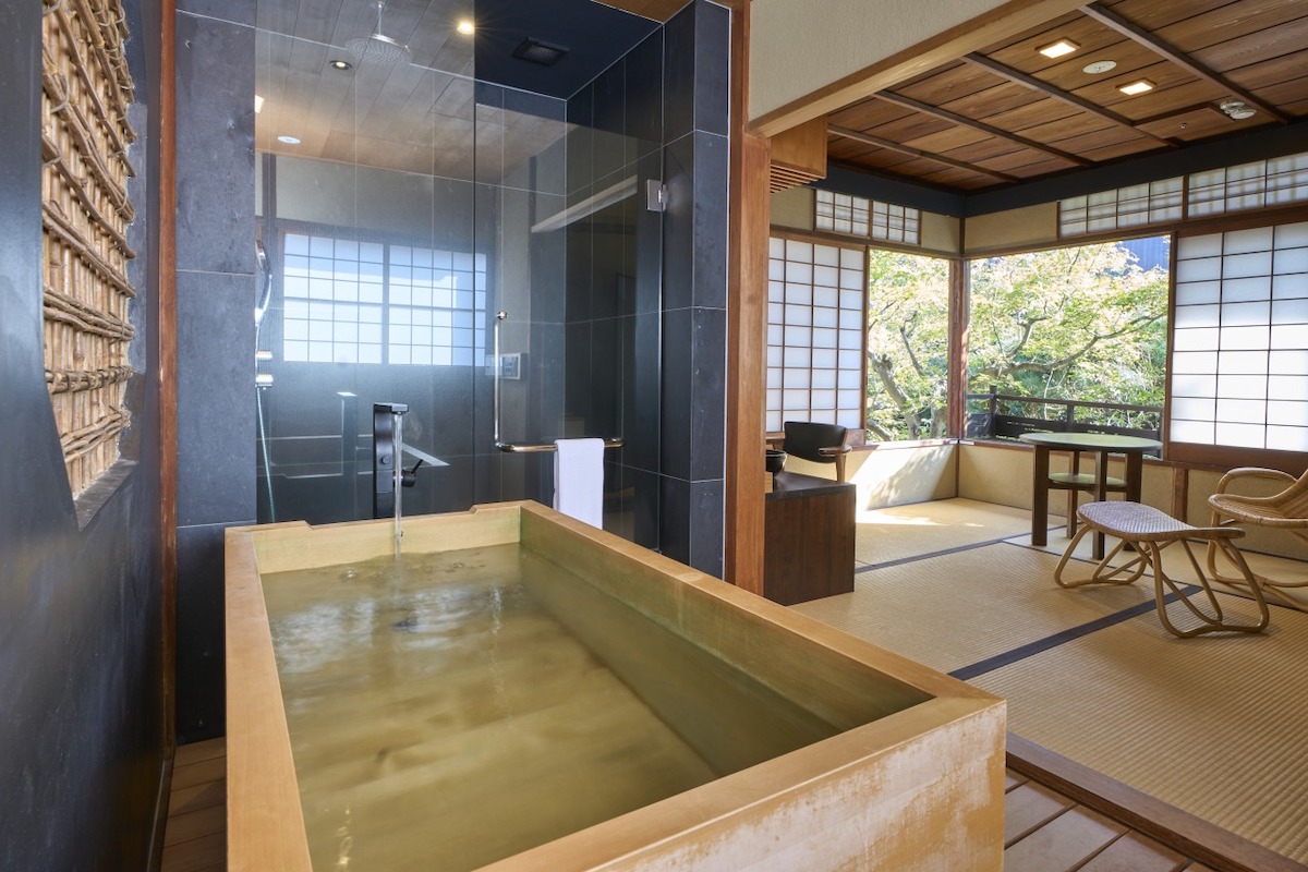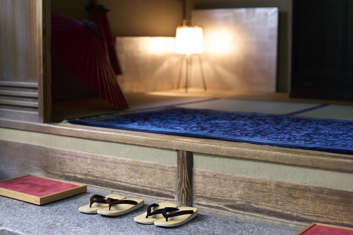 靴を脱いでホテルの中に入るというスタイルは珍しく、京都の老舗料亭の数寄屋建築ならでは!
