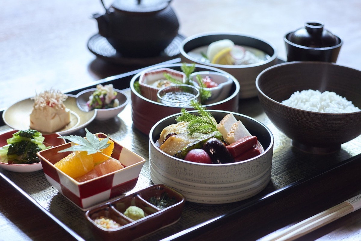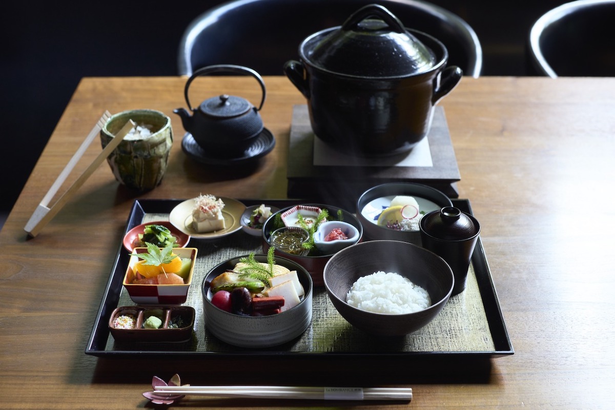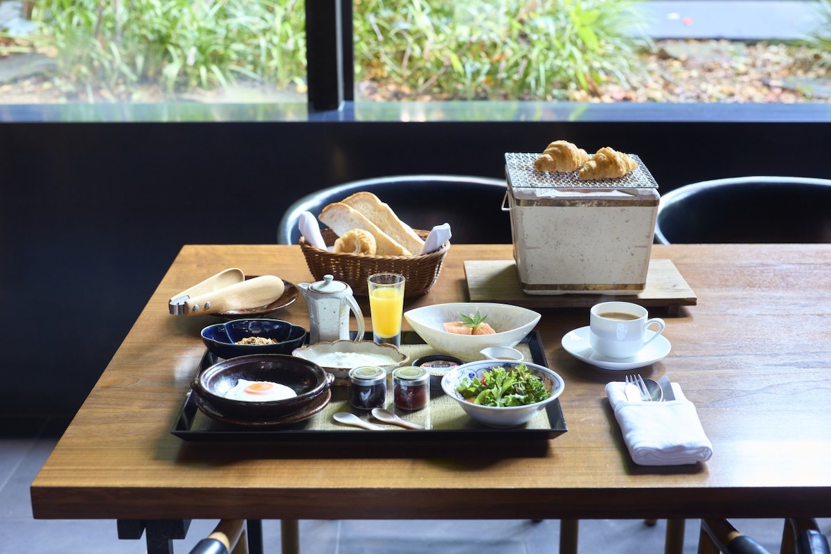 朝食は「ラ・ボンバンス祇園」で。緑の見える大きな窓と、落ち着いた空間が印象的で、京都の食材をふんだんに使用した、型にはまらないクリエイティブな日本料理が楽しめます。オーナーシェフの岡元信氏は、日本料理の名店で修業を積んだのち、西麻布に「ラ・ボンバンス」を開業。西麻布の本店は世界的ガイドブックにも掲載される名店で、2016年には香港にも店舗をオープンしました。