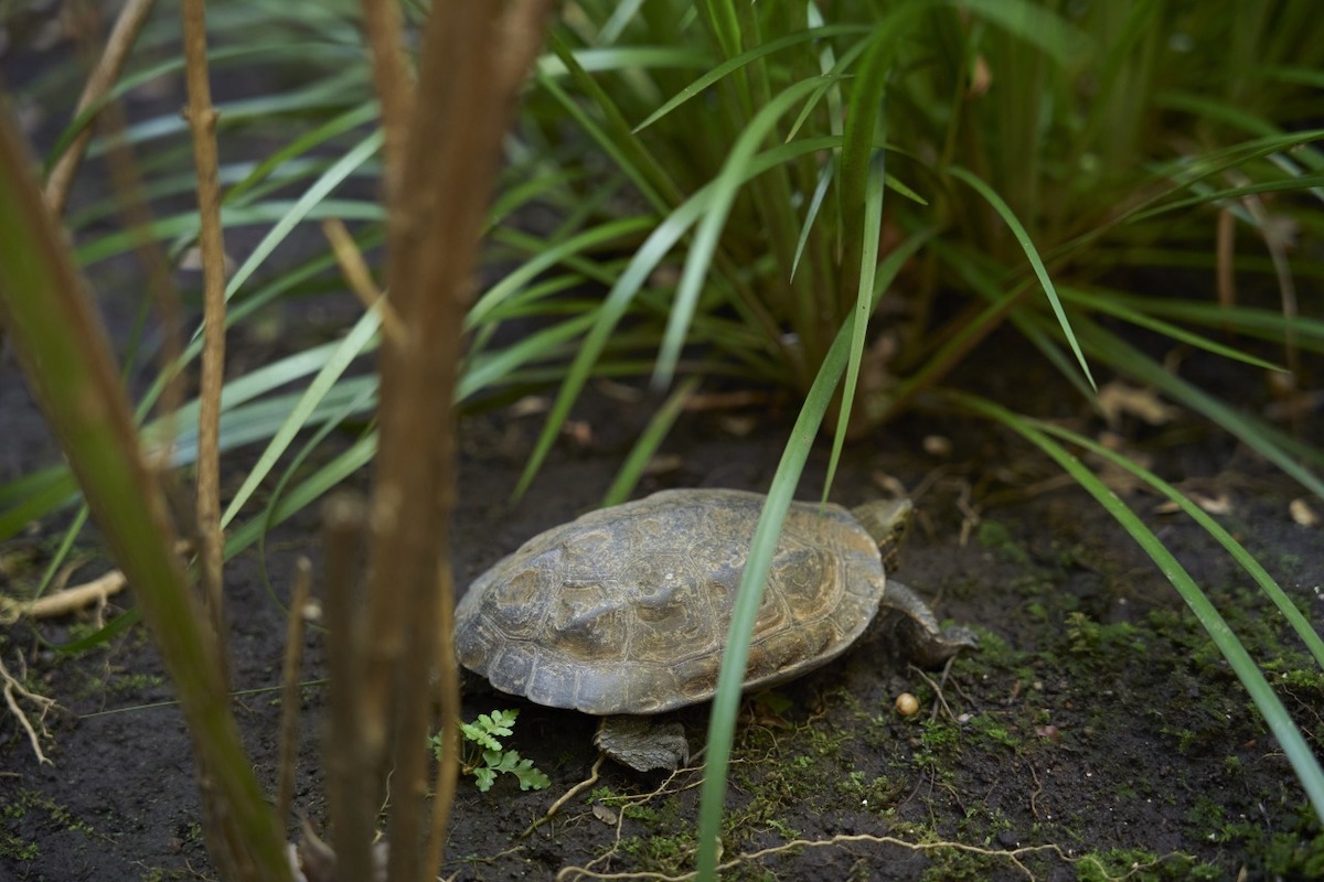 ロビーを抜けた先の廊下からは、庭園が眺められます。