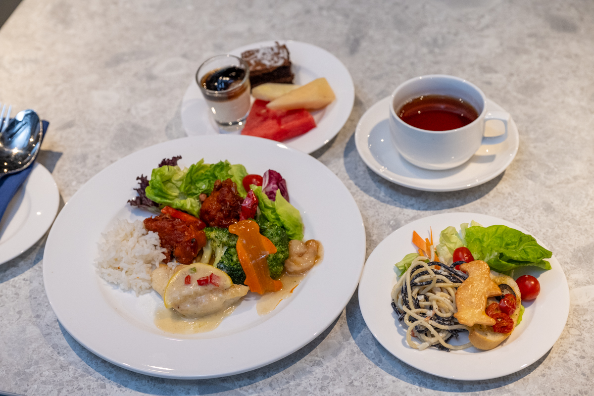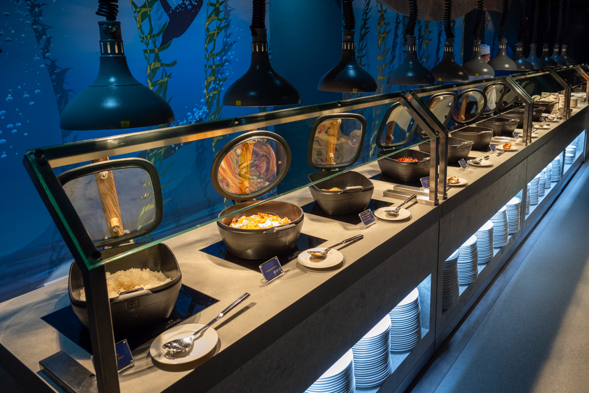 レストランでは地元シンガポールをはじめ、世界各国の料理をブッフェ形式で食べられます。各国のメイン料理のほか、スープ、サラダ、ご飯物、スイーツ、ドリンクまでバラエティ豊かな内容です。