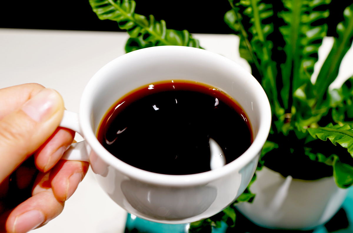 一般的なインスタントコーヒーをいれる際、テキトーにパウダーをパラパラッと振って、お湯も目分量…というズボラさなので、「おいしいいれ方」でいれた「スターバックス® カフェ モーメント」は目から鱗。サッとキレイに粉が溶けて、店舗で飲むような深い色合いのコーヒーができました!…飲む前から感動するとは気が早い。では、実際に飲んでみましょう。