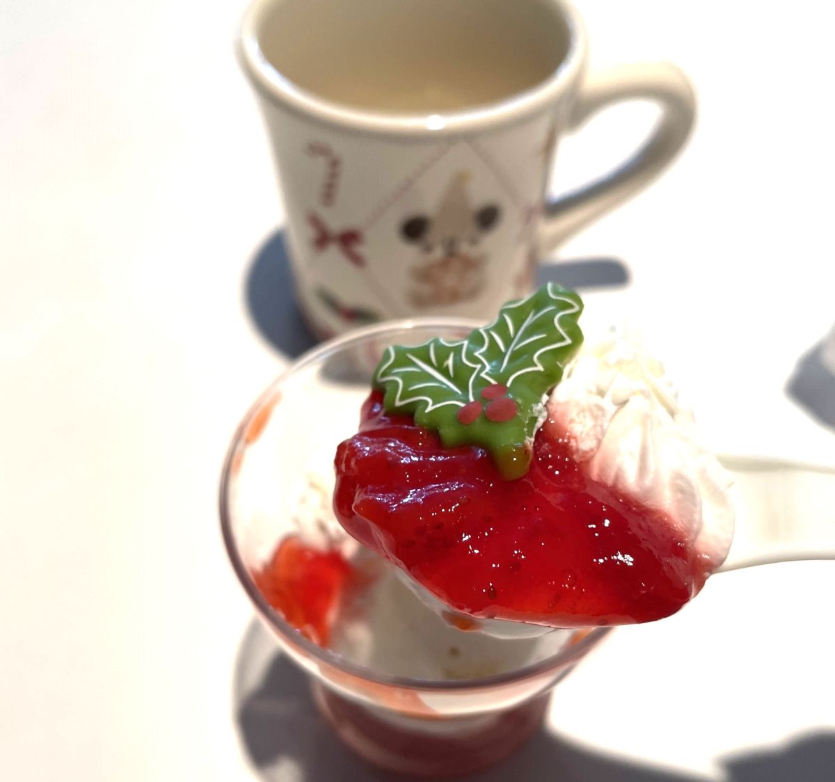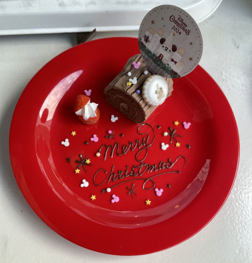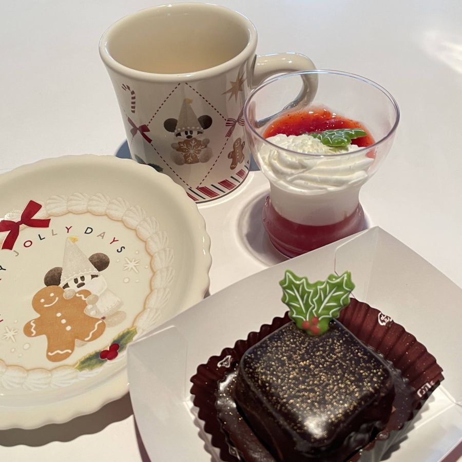 今年のディズニー・クリスマスのスーベニア付スウィーツは「練乳ムースとベリーゼリー」550円、スーベニアカップつきで1200円、と「チョコレートケーキ(ナッツ入り)」550円、スーベニアプレートつきで1200円。どちらも実食してみました。