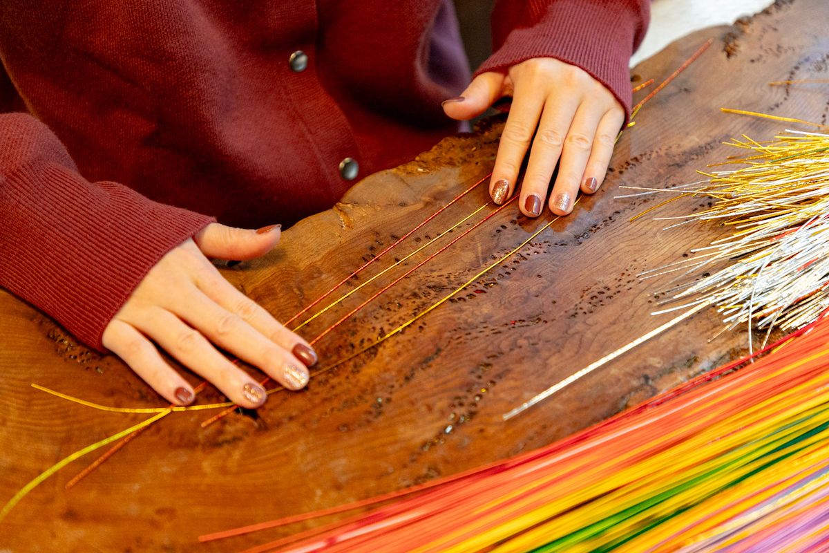 早速水引イヤリング作り体験に挑戦します!まずは店内にあるたくさんの水引から好きな色をチョイス。たくさんの色があって悩むので、事前にどんな色のイヤリング(ピアス)にしたいか考えておくと良さそう。