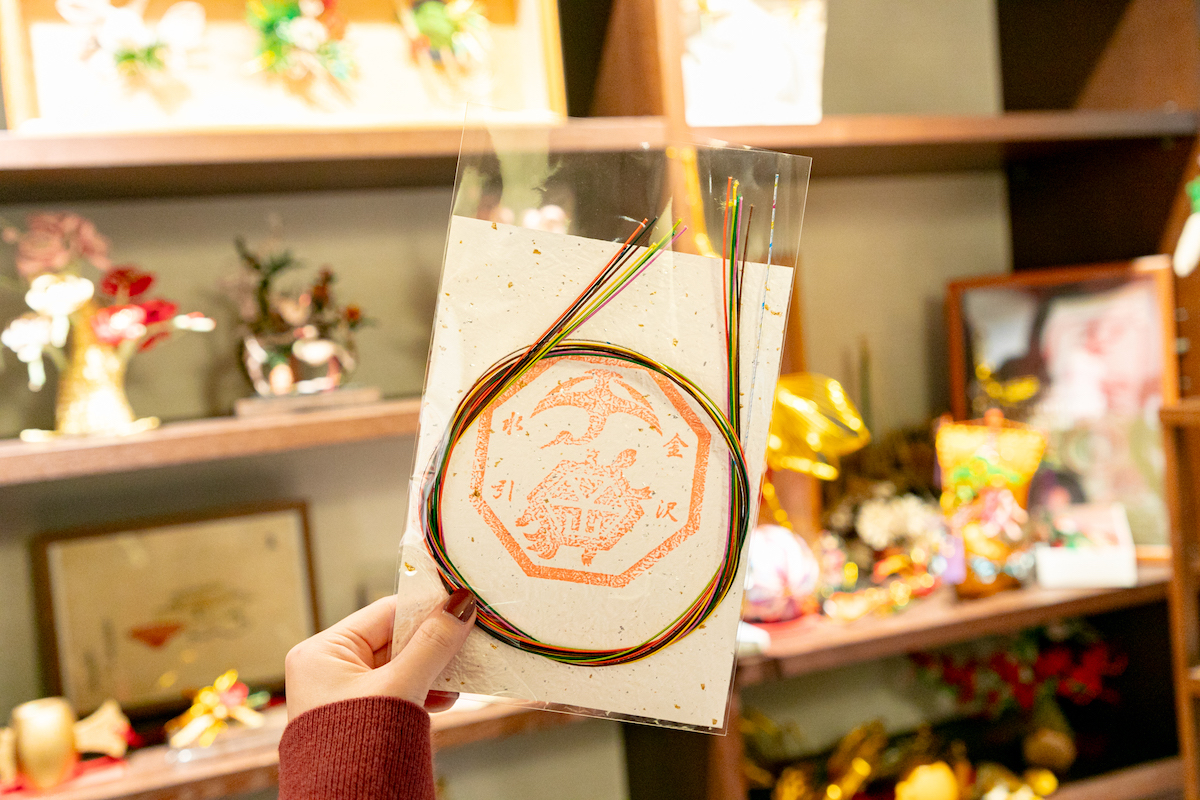 金沢の伝統工芸品である水引の専門店「平岡結納舗 本店」は、手軽に水引の小物作りを体験できるとあって若い人にも人気。お店は金沢駅から北鉄バスに乗って「南町・尾山神社」で降りて徒歩2分の場所にあります。