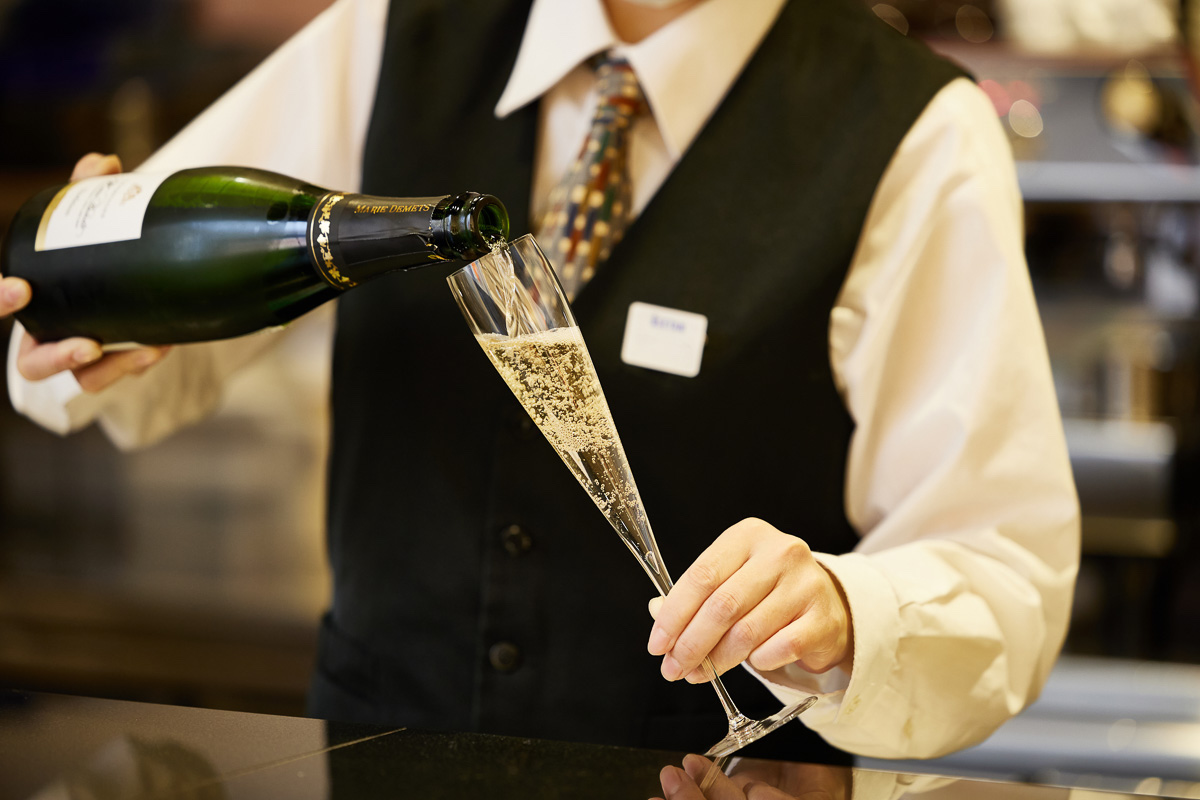 目の前でシャンパンが注がれる時間は、なんだかぜいたく。