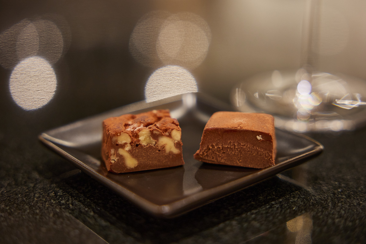 こちらに来たらぜひシャンパンと一緒に食べてもらいたいのが、自家製のトリュフチョコレート。こちらはお店オリジナルの手作り。なめらかな口当たりと芳醇な味わいで、豊かな気持ちになれます。