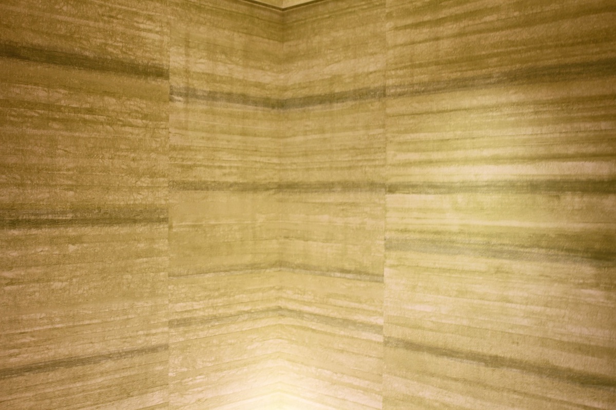 階段や通路、壁、床などの内装は、いたるところに京都や「京ばあむ」を感じるデザインが施されていて、見どころ満載です。壁紙は、「京ばあむ」に使用している抹茶が練り込まれた和紙と聞き、びっくり!