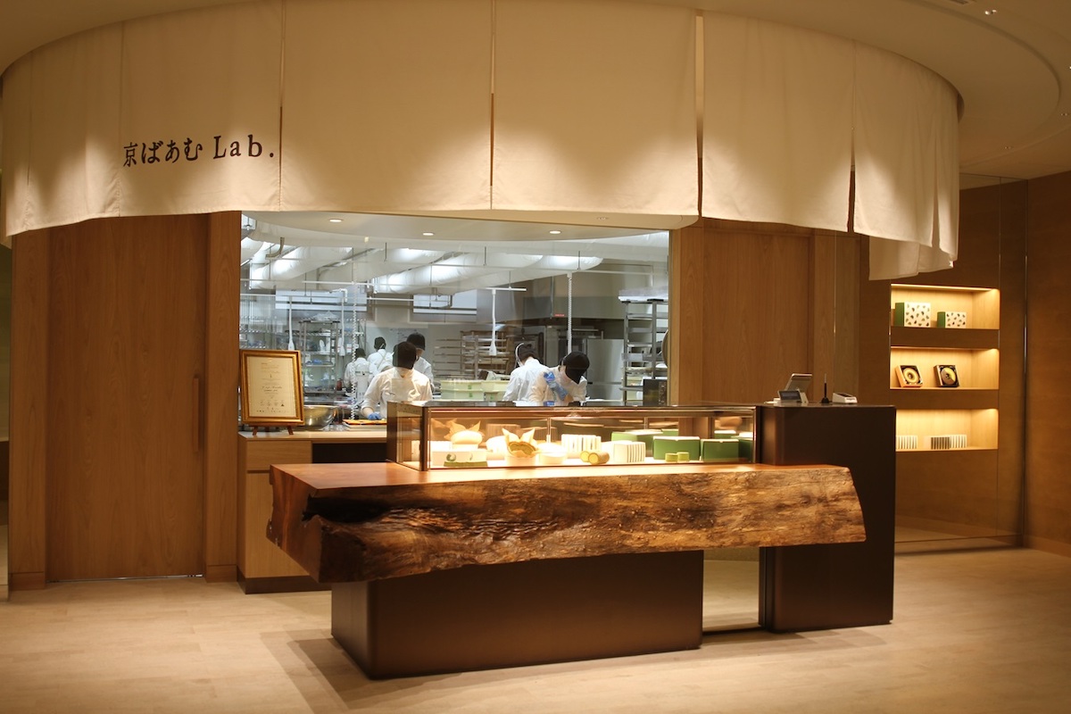 1階にはパティシエたちがお菓子づくりをする工房「京ばあむLab.」も併設。洋菓子、和菓子を問わず、素材のよさを活かしたお菓子を開発する拠点となるそうで、ここからどんな新しい商品が生まれるのか楽しみです。