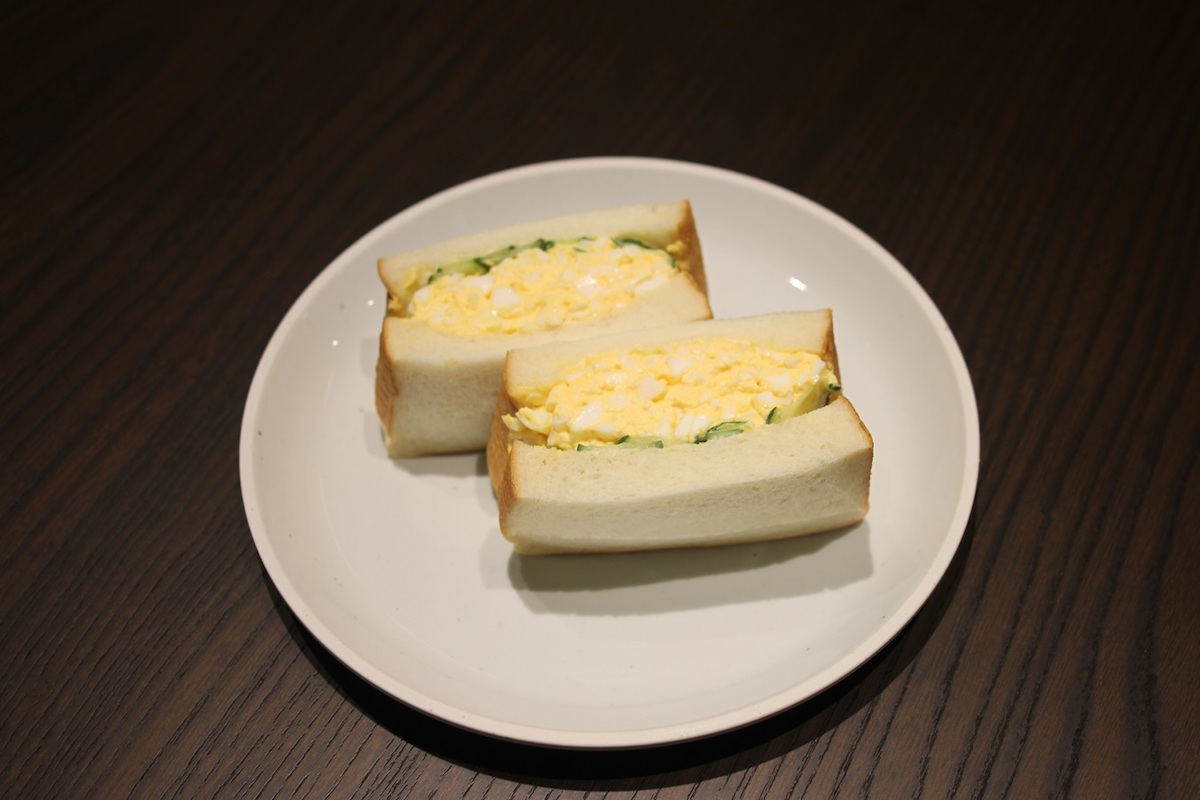 「京ばあむ」と同じ卵を使った「たまごサンド」660円は、美十が手がける高級食パン店「別格」のパンを使用。マヨネーズと塩だけのシンプルな味つけの卵に、辛子マヨネーズを塗った、もっちり、ふわっとした食感のパンでサンドしています。