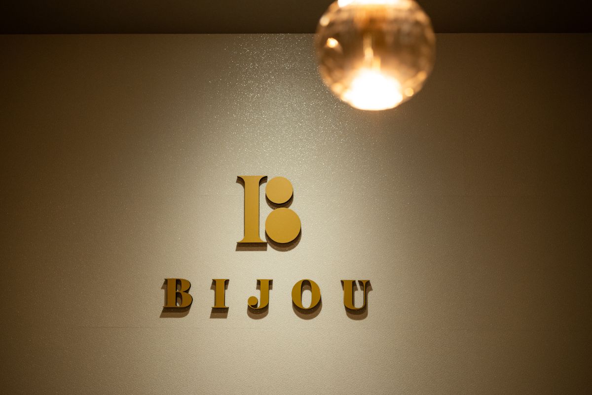 「BIJOU」のロゴで一際目立つ、アルファベットの「B」の文字。右側の小さな丸はほっぺ、下の丸はおなかを表します。そのまん丸な形から、心もお腹も満ち足りていることが見て取れます。