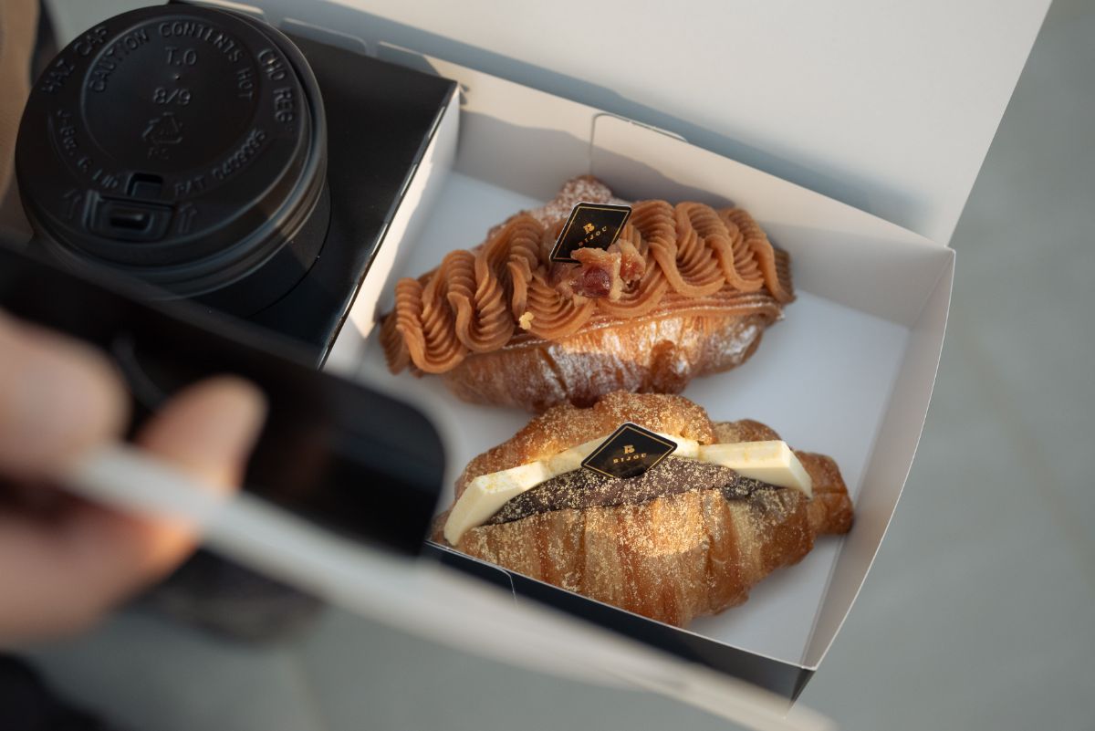 単品での購入はもちろん、クロワッサンド2つとドリンクのセットもあります。モノトーンの箱が可愛い「ごほうびBAG」は、数量限定のお得なセット。あらかじめ指定されたメニューの中から、好きなものをセレクトするスタイルです。