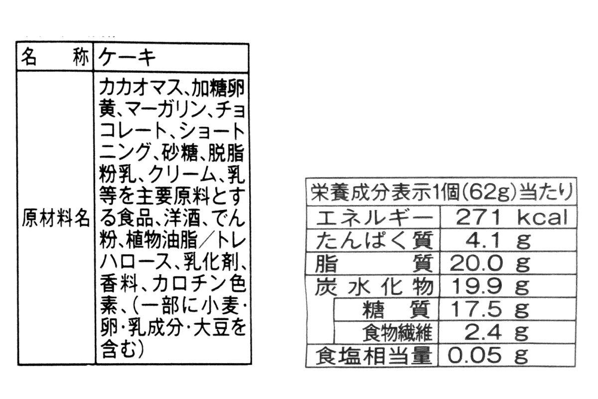 「カカオ香るガトーショコラ」の気になるカロリーは1個あたり271kcal。濃厚な味わいなので、1個を小分けにして食べるのもおすすめ。少しの量でも、満足感がありますよ。