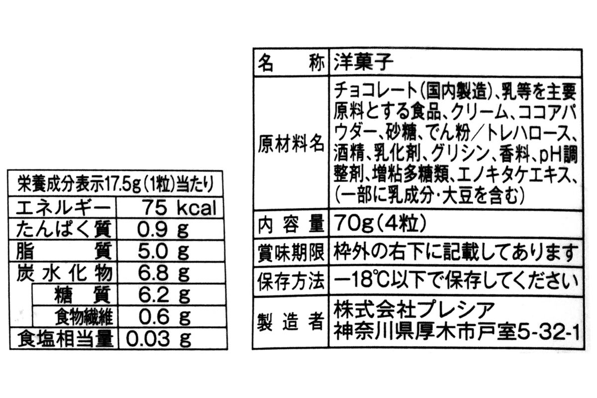 気になるカロリー、トリュフの方は、1粒あたり75kcalです。