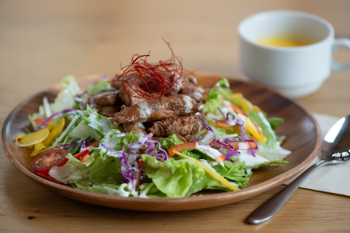 そんなCafe AFUMIの看板メニューは、大阪の人気店「白銀亭」のカレー。白銀亭の店主が滋賀県出身というご縁で、特別にルーを提供してもらっているそう。甘みと辛さが絶妙なバランスで調和したカレーは、一度食べたら忘れられない日本人好みの味わいです。