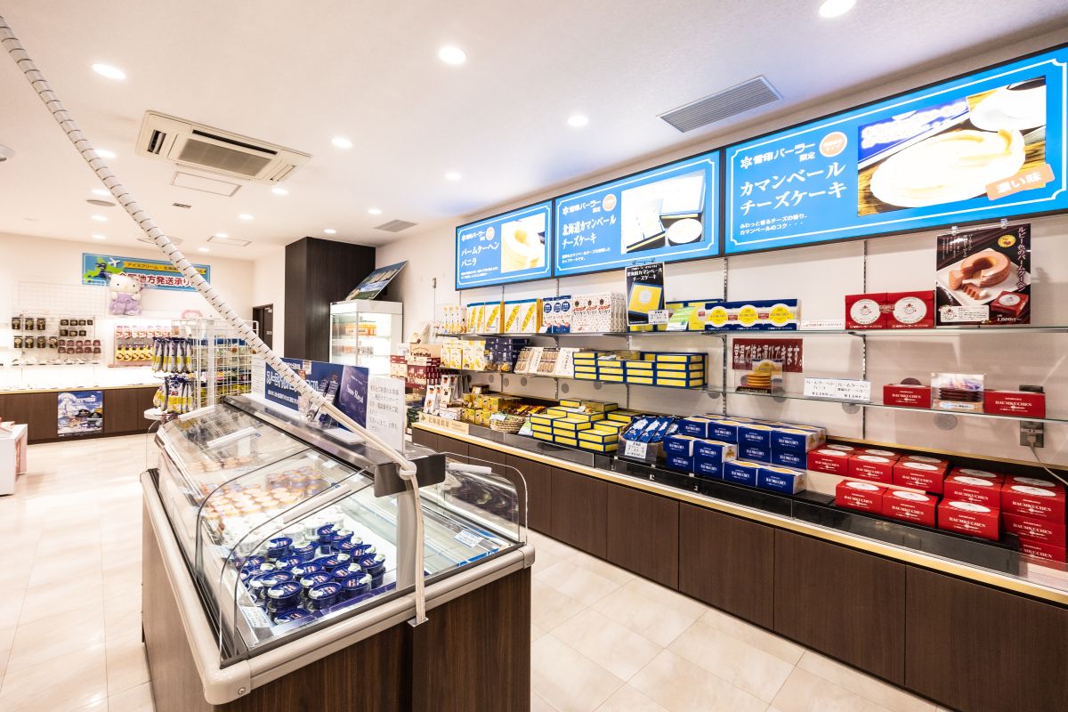 店内には、オリジナル商品をはじめ、雪印パーラーが推奨する北海道銘菓が並ぶおみやげの販売コーナーもあり、地方発送も可能です。