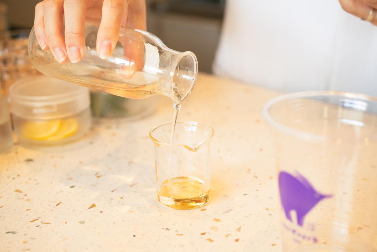 それぞれの素材を配合してもらったあとは、お楽しみの試飲タイム。完成前の最終調整で、好みの味や香りを細やかに掘り下げて調整を行い、ついに完成です!