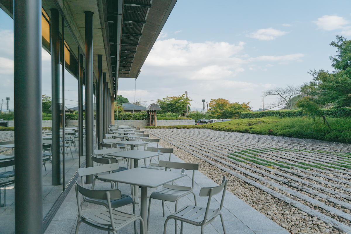 カフェタイムなら、第2会場の嵯峨嵐山文華館に併設しているカフェ「嵐山OMOKAGE テラス」もおすすめ。川沿いから少し入った場所にあるせいか、人通りが少なく穴場スポットなんです。庭に面したテラスで、京の情緒を感じながらくつろぐことができますよ。