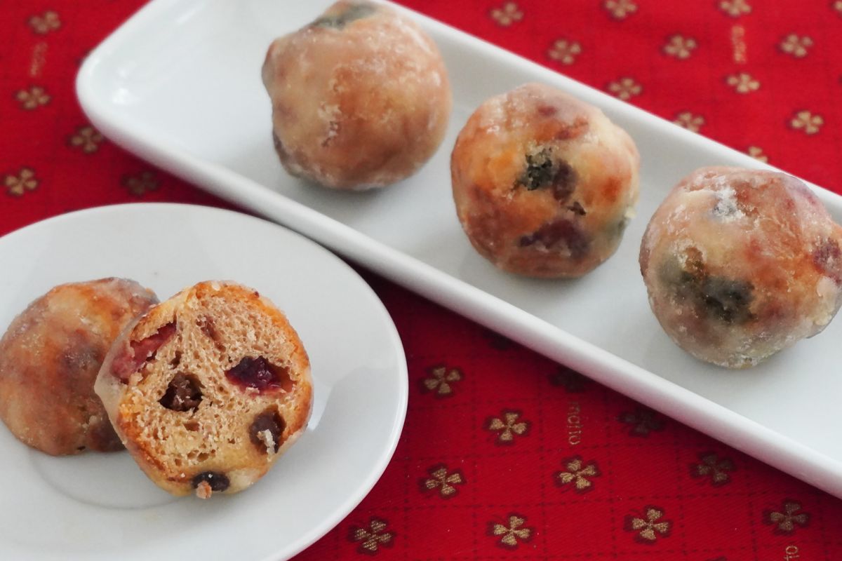 シュトーレンとはドイツ語で「坑道」という意味。もともと長い山の形をしていて、雪に見立てた粉砂糖がパラパラとまぶされているのが一般的な形ですが、この「5種ドライフルーツのプチシュトーレン」は、まあるく焼き上げられています。
