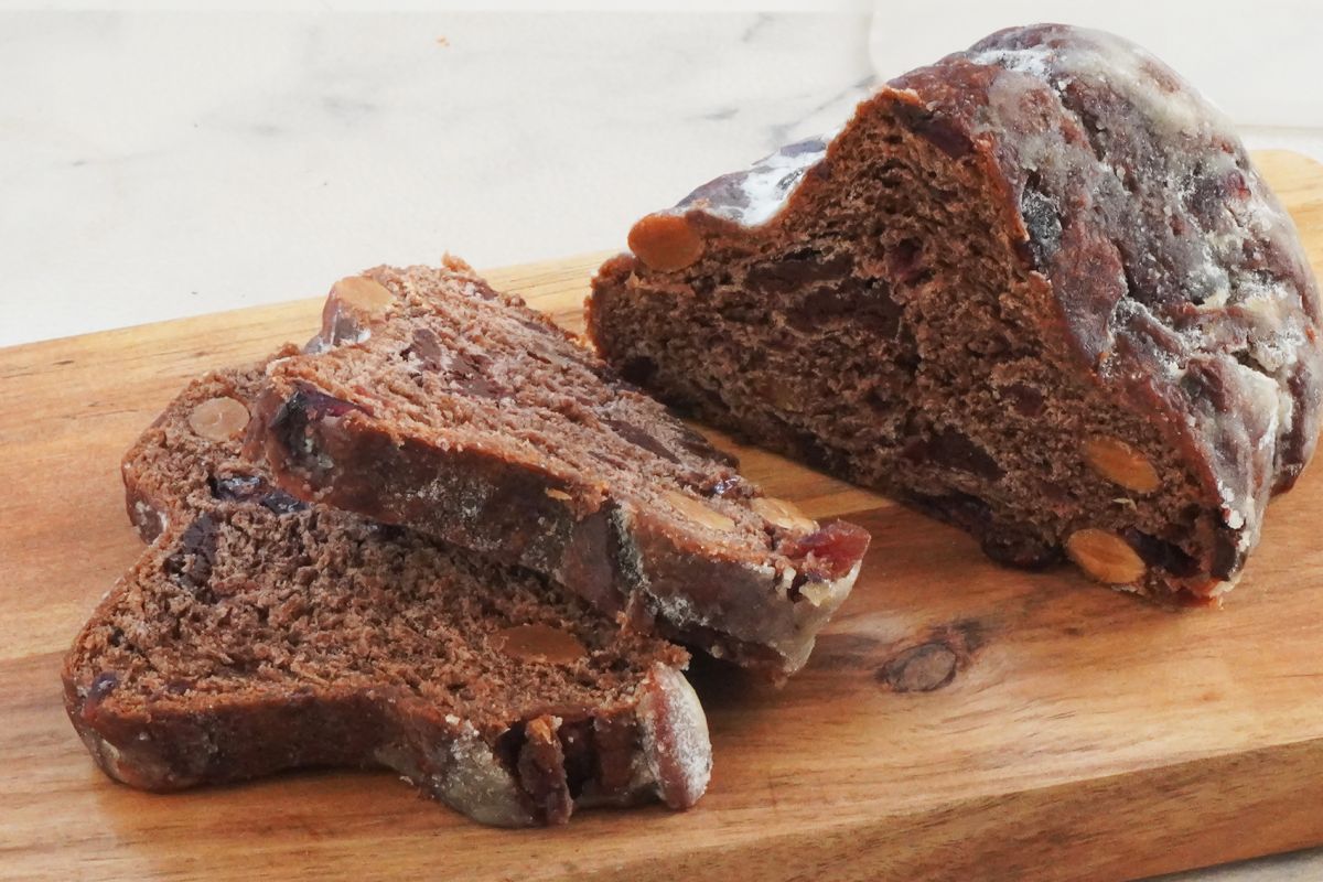 ビターなチョコレート風味!「成城石井自家製 アーモンドとクランベリーの70%クーベルチュールシュトーレン」