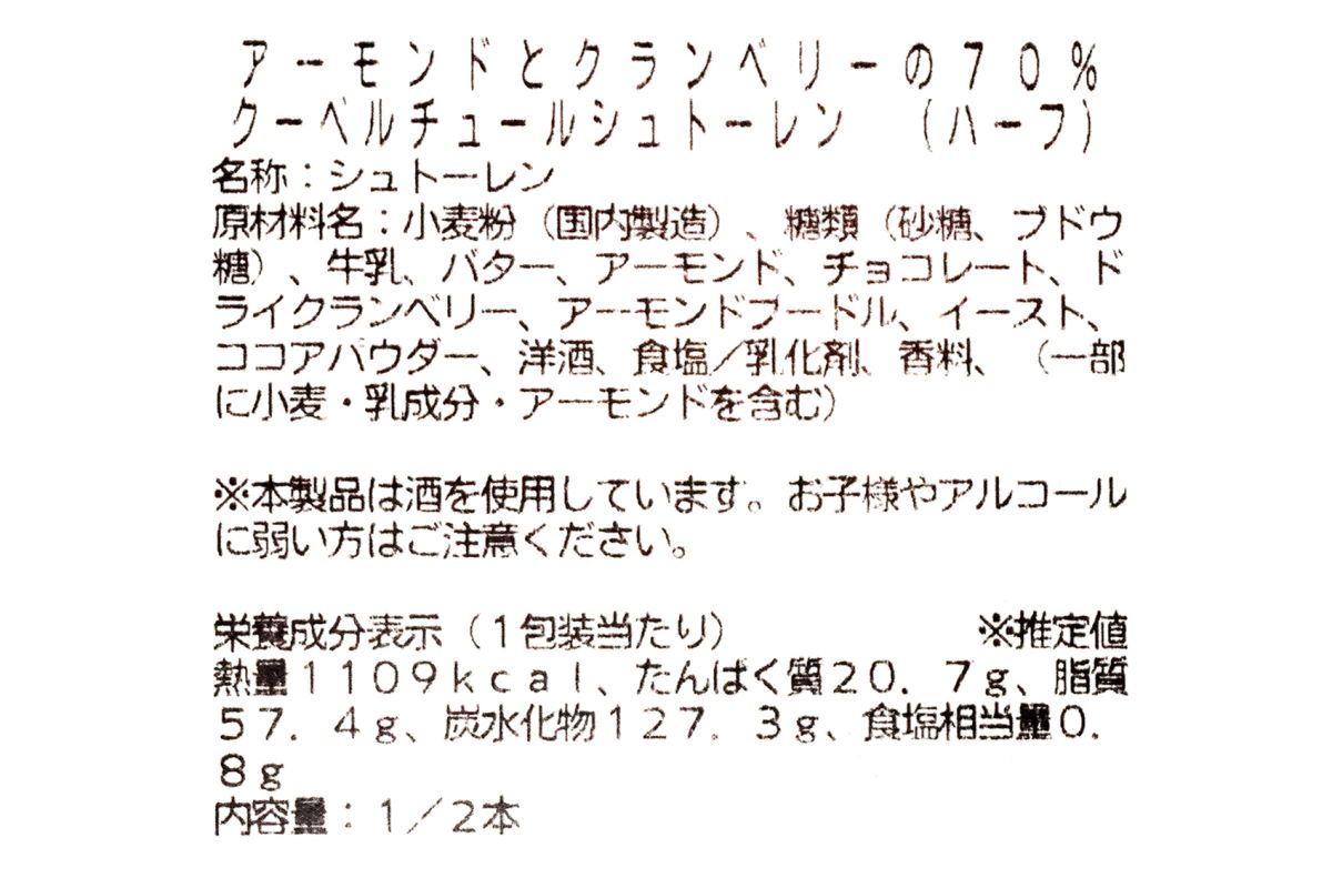 ハーフサイズの価格としては少々値が張りますが、「70%クーベルチュール」というワードに惹かれ、思い切って購入してみました。チョコ味のシュトーレンって、どんなでしょう?