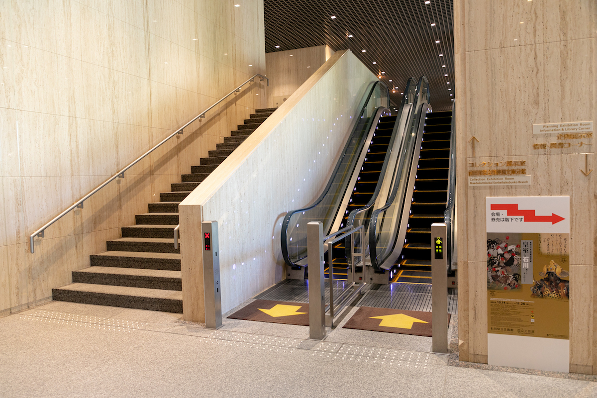 石川県立美術館は、2階のコレクション展示室と1階の企画展示室があり、それぞれ展示室前近くのチケット売り場でチケットを購入して入ります。