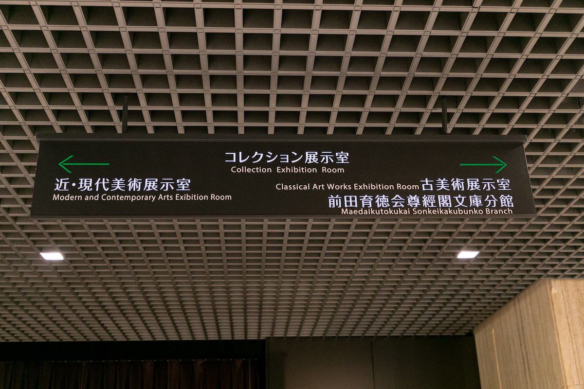 コレクション展示室は第1展示室(国宝)、第2展示室(古美術)、第3、4、6展示室(近現代絵画・彫刻)、第5展示室(近現代工芸)、前田育徳会尊經閣文庫分館で構成。まずは第1展示室へ!