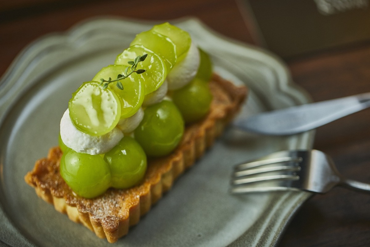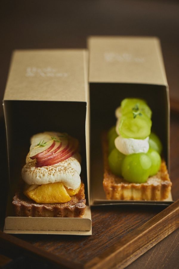 さて、「Hyde&Away京都東山店」の看板メニューは、国産フルーツをふんだんに使った「ハコタルト」。季節限定メニューもあり、初秋の人気はなんといってもシャインマスカット。フルーツの目利きが厳選した大粒のシャインマスカットがたっぷりと載っています。