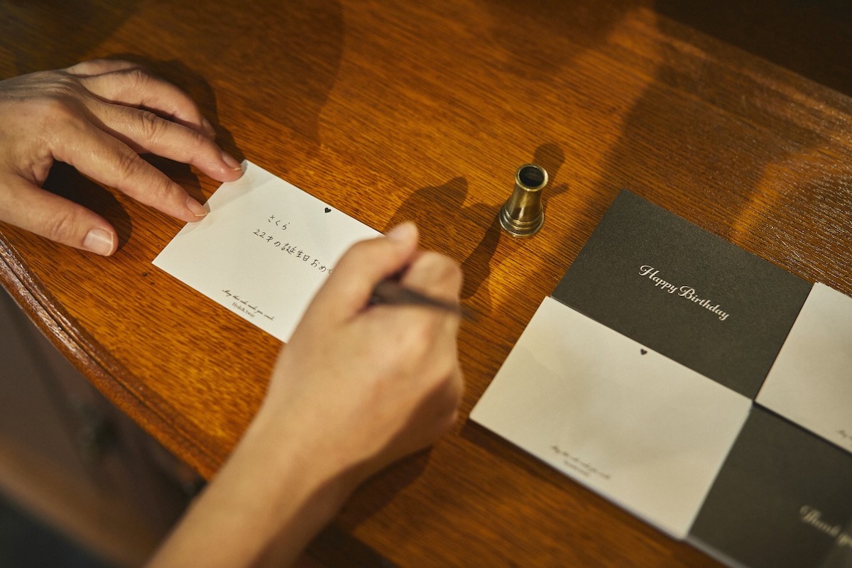 さらに「Thank you」「HappyBirthday」のフリーメッセージカードの用意があり、ひとこと添えてプレゼントすることもできます。箱の中から宝石のように輝くフルーツのタルトが現れたら、きっと贈った相手も喜んでくれるはず!