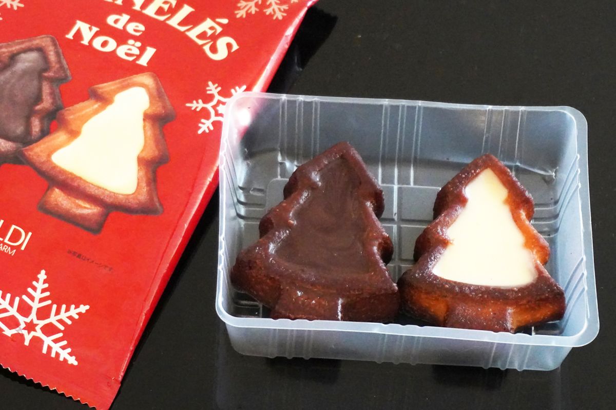 一つのパッケージに、ツリー型のカヌレが2種類入っています。ツリーのサイズは横幅が最大6cm、高さ7cm、厚みは2cmほど。